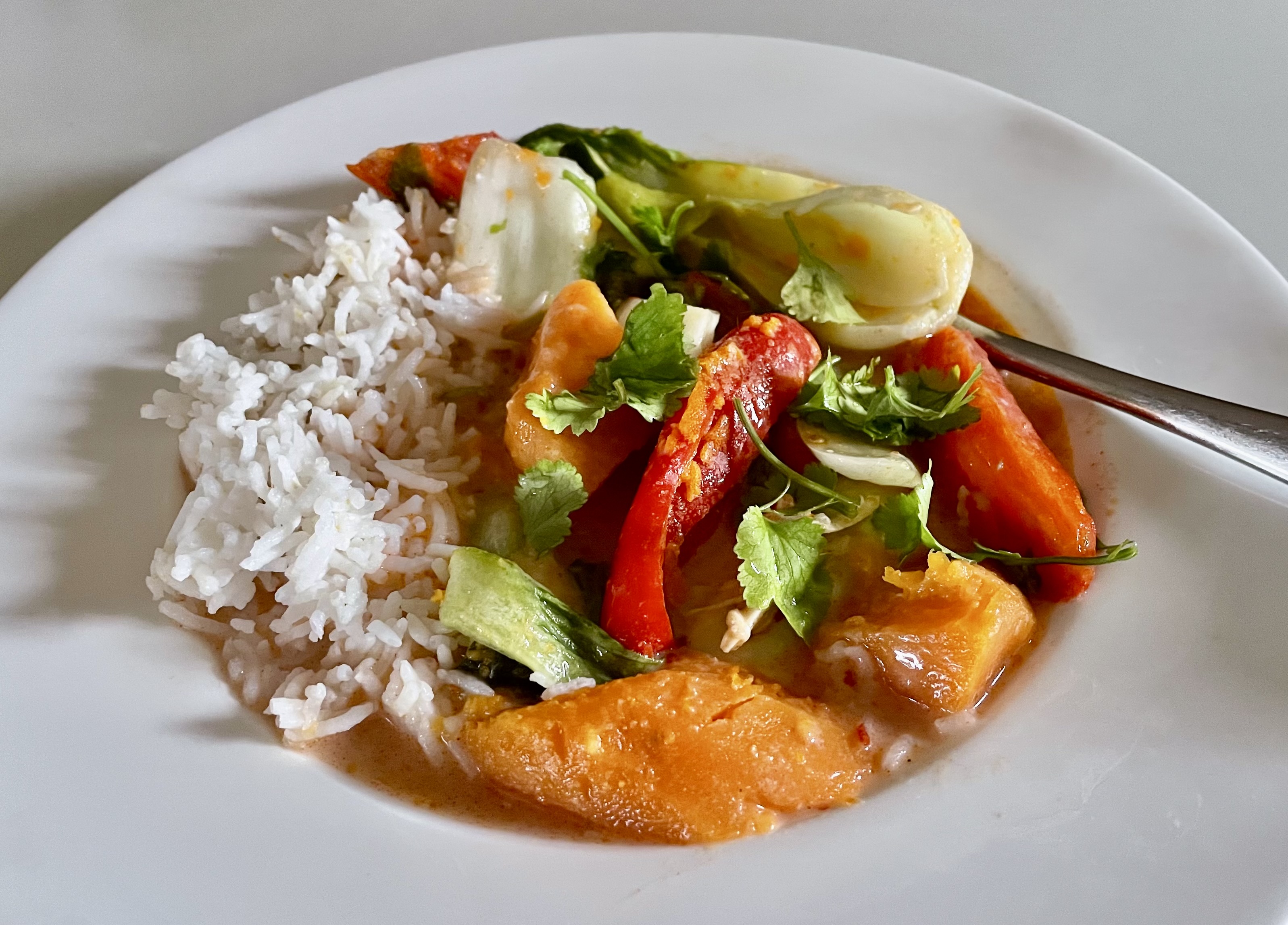 Warming spices kindle digestive fire without overstimulation. Sweet root vegetables ground restless energy. Coconut milk lubricates dry Vata skin and joints. One-pot slow cooking makes food easy to digest.