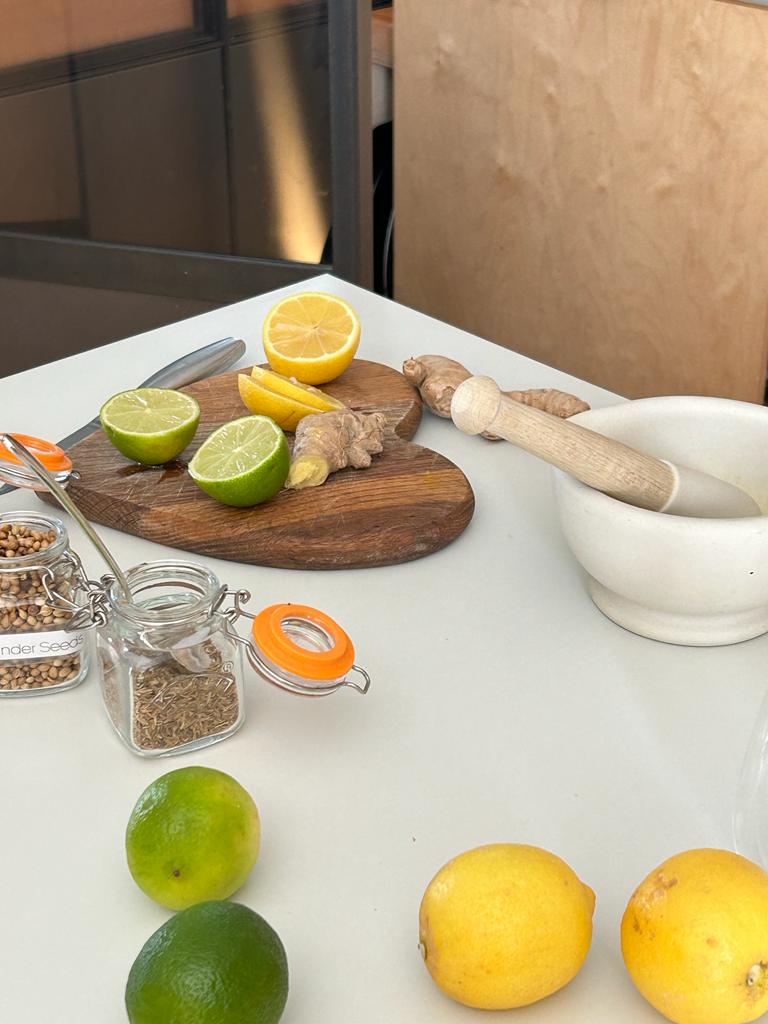 A gentle aromatic drink to awaken digestion without stimulation. A perfect balance - Cumin, Coriander & Fennel - with fresh Orange to brighten. This is about arrival and settling in before we begin.