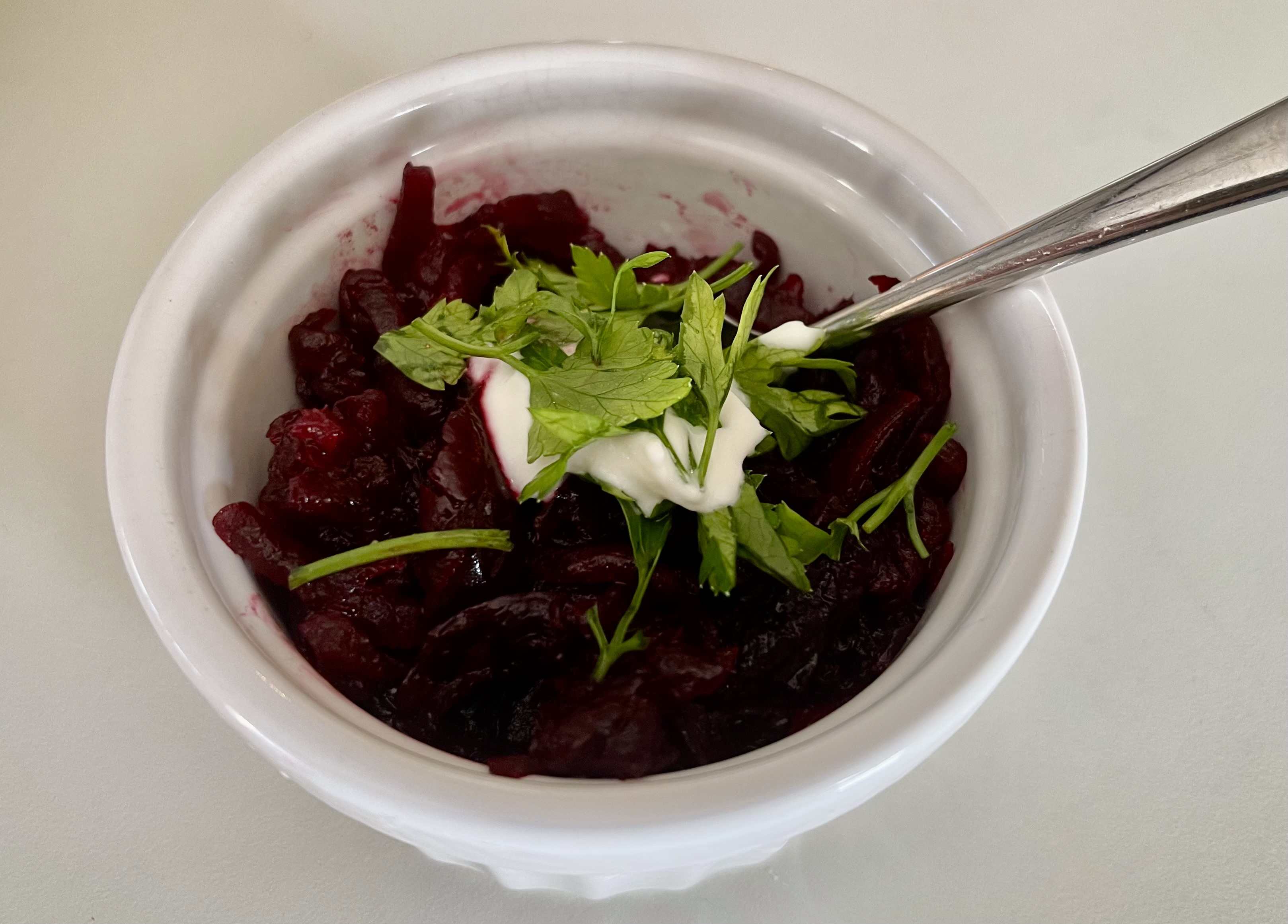 Beetroot roasted until tender (prepared ahead) warmed in ghee with aromatic fennel and topped with spiced yogurt, walnuts and coriander.